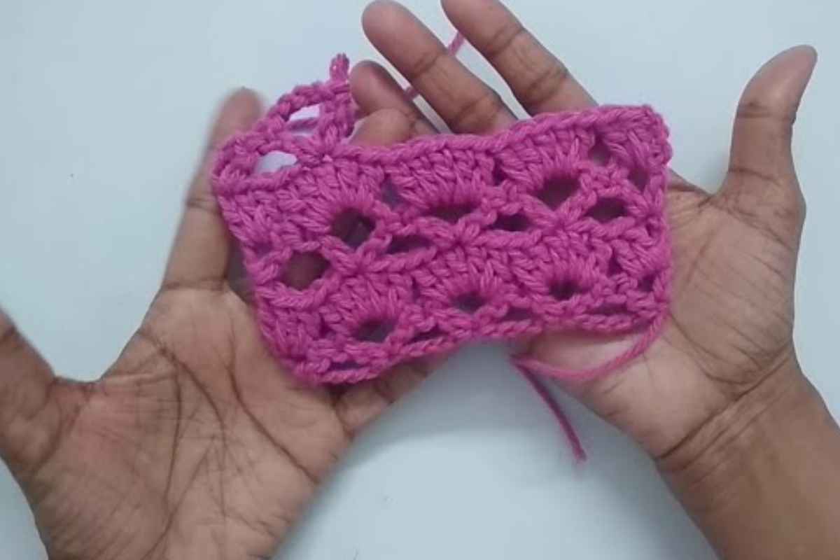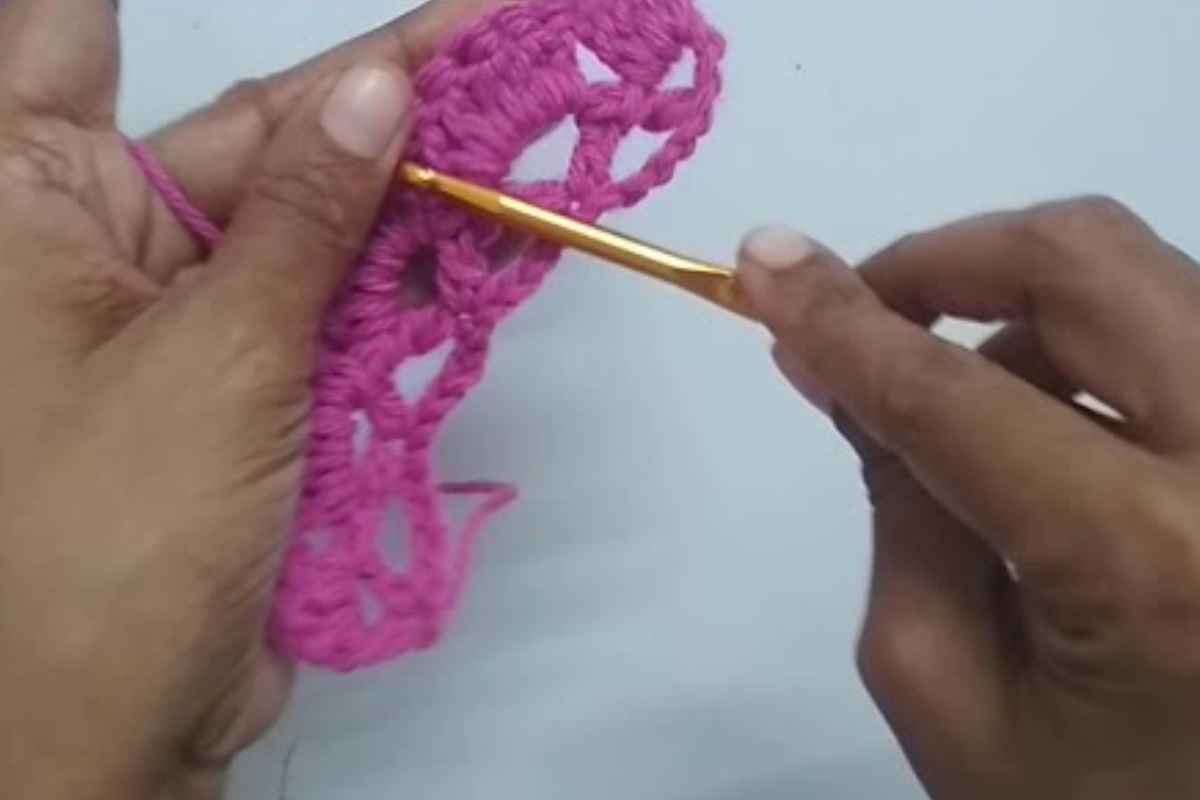 Row 1: Double crochet (dc) in the 4th chain from the hook (the skipped chains count as the first dc), chain 3, skip 3 chains, dc in the next 4 chains. Repeat from * to the end of the row. Turn your work.