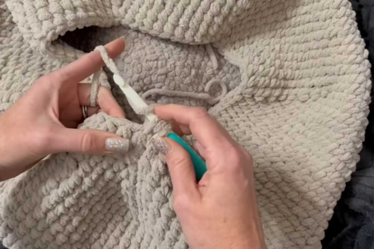 While the hook size might be smaller than the recommended one (based on the band), this intentional choice adds structural integrity to the pouf, ensuring the stuffing remains concealed and maintains its form.