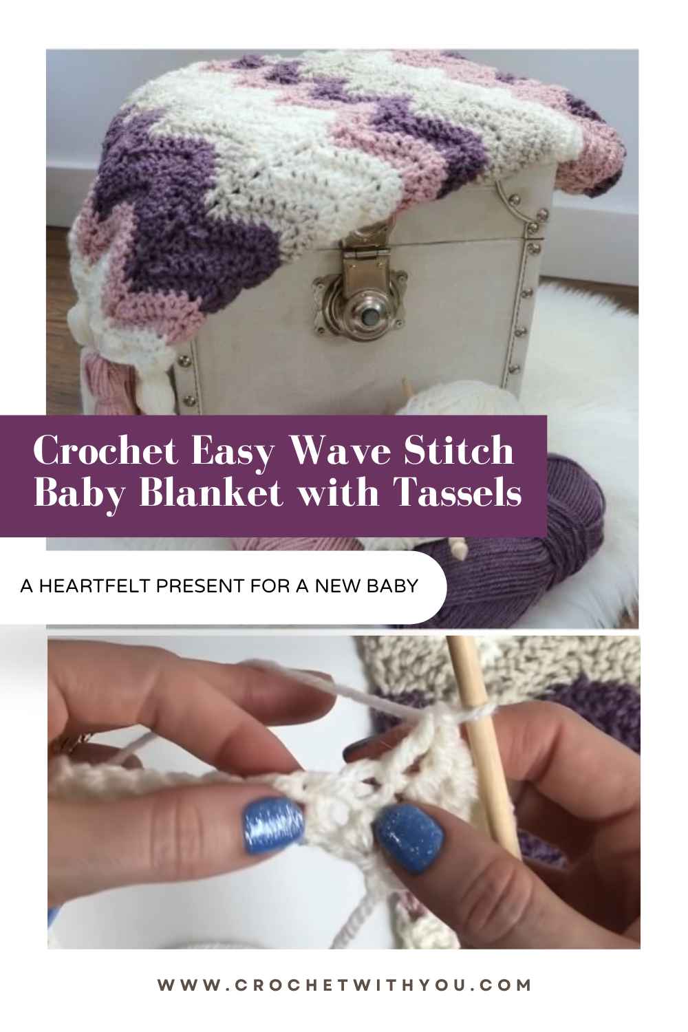 Crochet Easy Wave Stitch Baby Blanket with Tassels