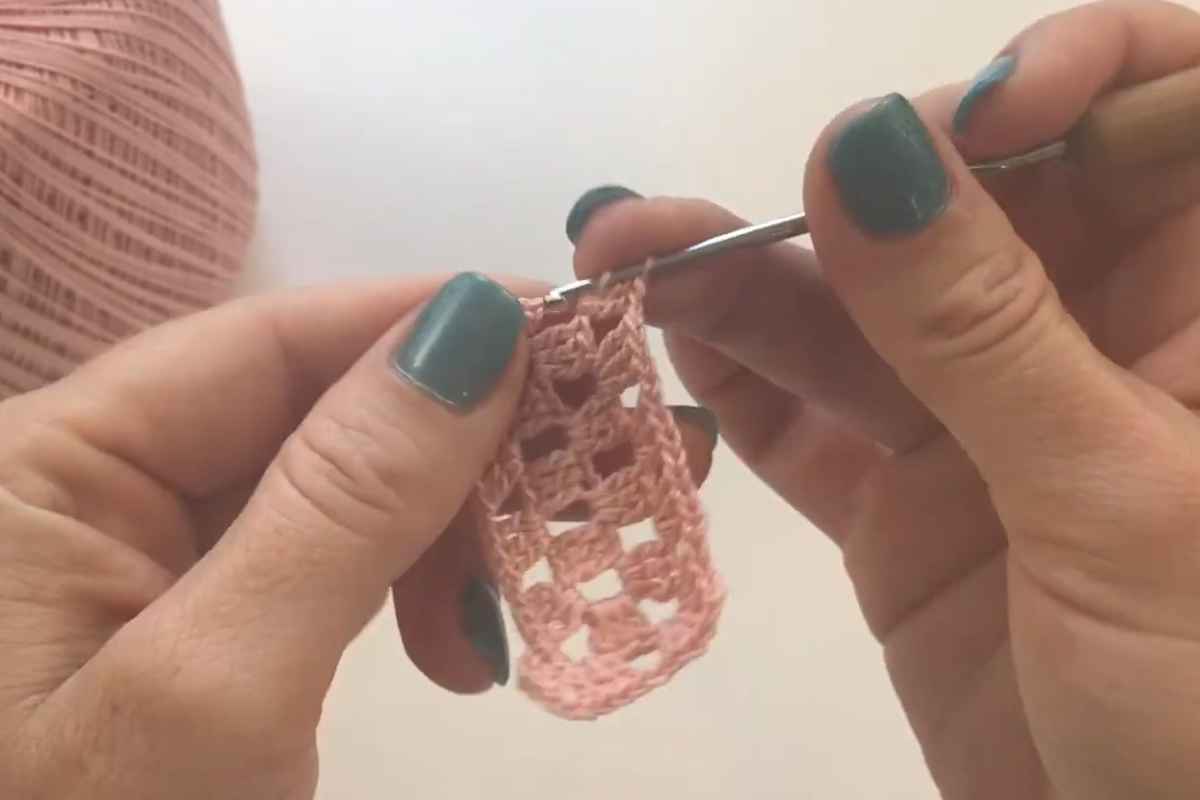 - Row 26: Chain 1, single crochet in the first 5 stitches, chain 4 (this will be the buttonhole), skip 4 stitches, single crochet in the last 5 stitches. Turn your work.