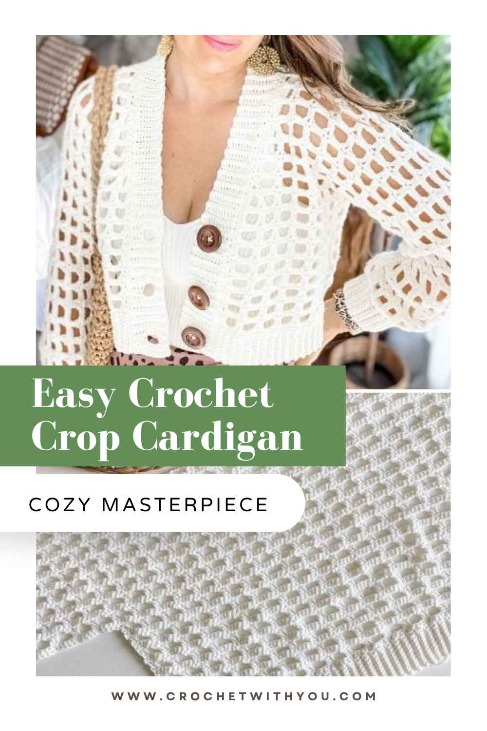MJ's Off The Hook Designs invites us to embrace the world of easy crochet cardigans with the Peek-A-Boo Crop Cardigan.
