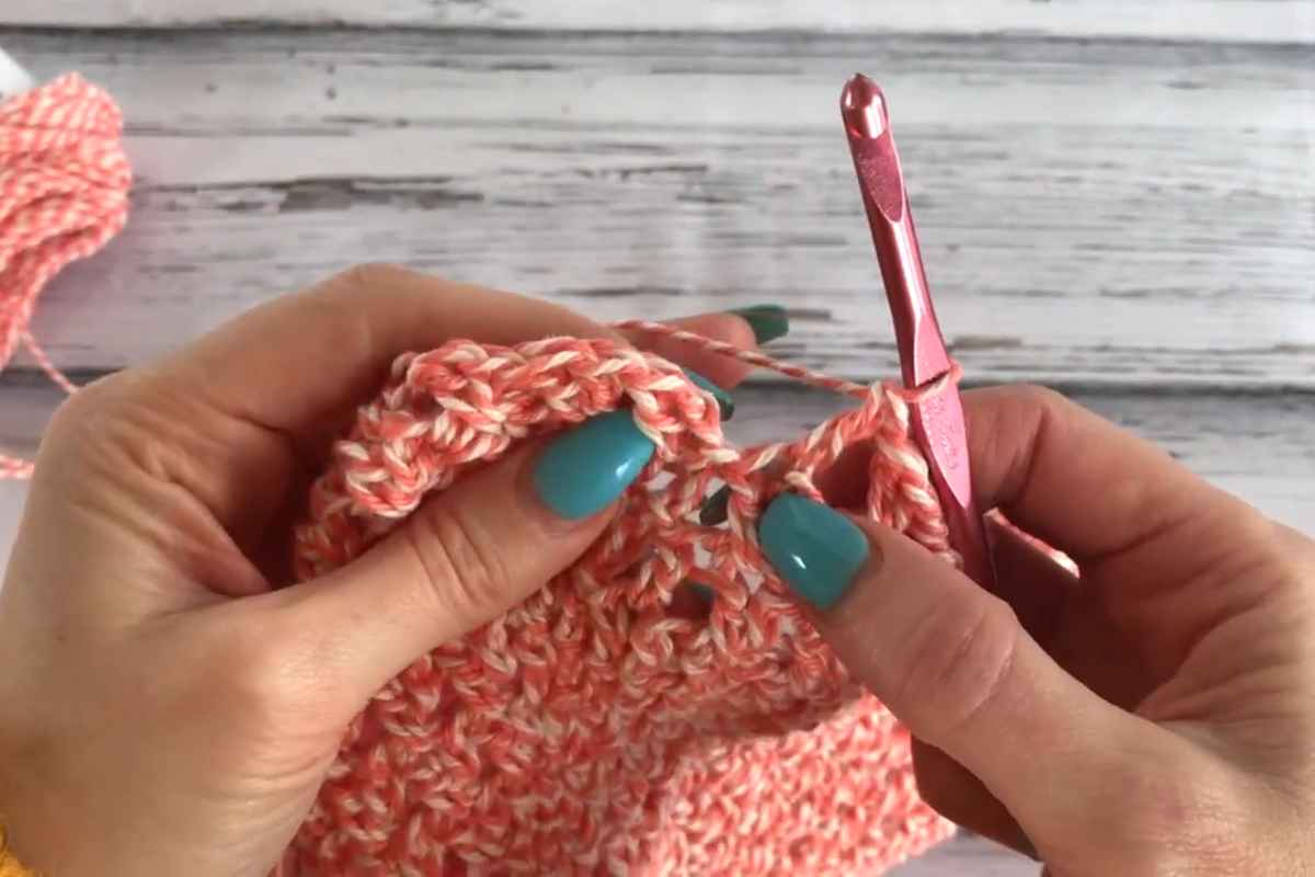 Once the base is complete, you’ll move on to the body of the bag, where the mesh-like pattern allows for flexibility and expansion, perfect for carrying groceries or beach essentials.