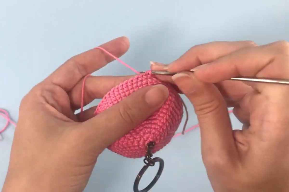 - Begin decreasing evenly to close the body, leaving an opening to add stuffing before fully closing.