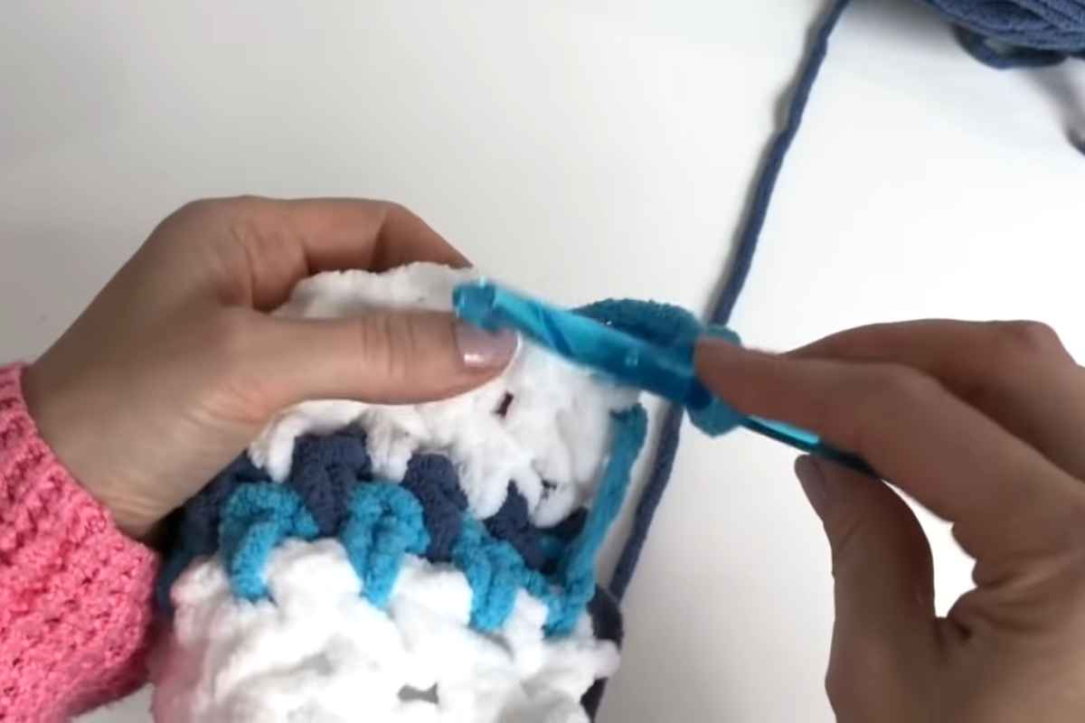 - Continue working the moss stitch pattern for the desired length of your blanket, alternating single crochets and chain stitches to create the textured look.