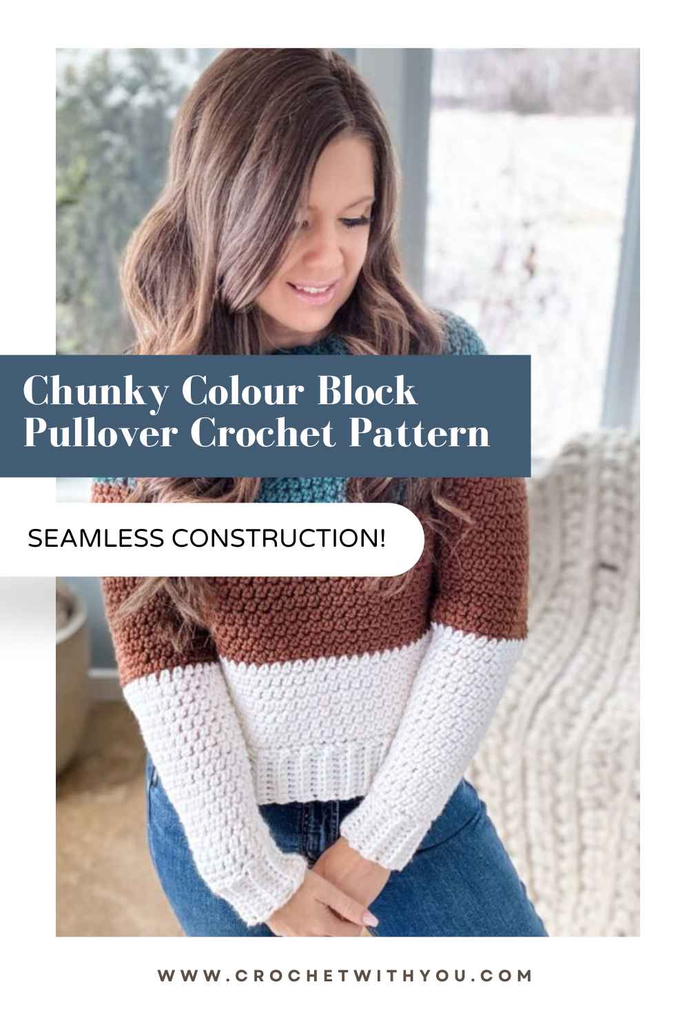 Seamless Construction! Chunky Colour Block Pullover Crochet Pattern