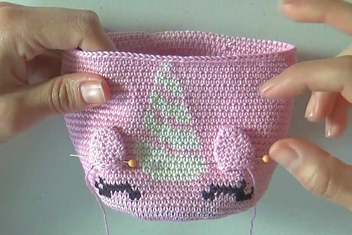 The bag takes shape, and additional embellishments are added to enhance its charm. The construction starts from the bottom up, all while crafting the eyes and horn that give the unicorn its distinctive character.