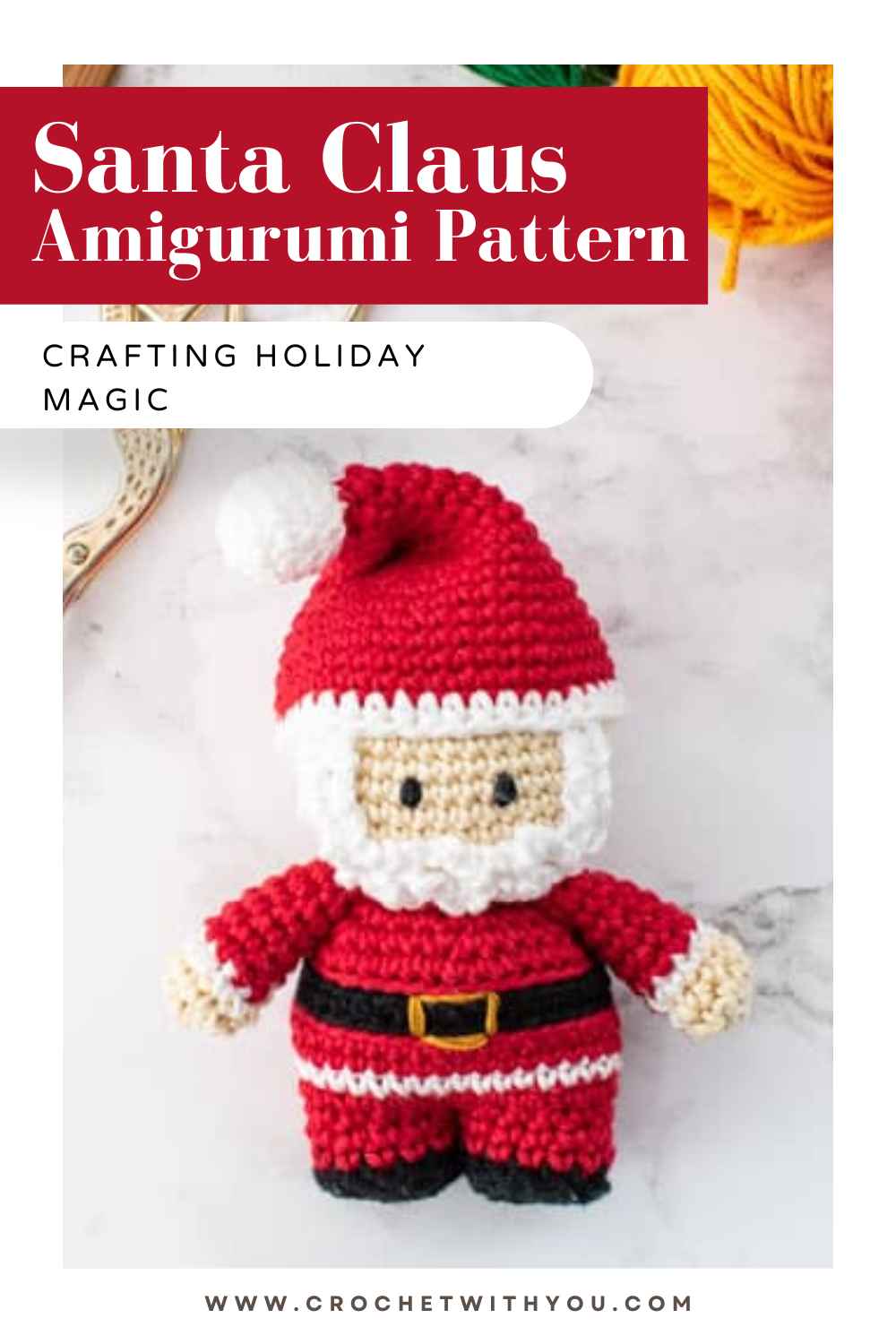 The magic begins with the joyous anticipation of creating a miniature Santa Claus through the enchanting art of amigurumi.